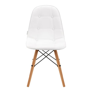 The seat is filled with a sponge and covered with upholstery made of pleasant-to-touch faux leather in shades of white, which is very easy to keep clean . Small stains and dirt can be easily removed with a slightly damp cloth. Aesthetic quilting and careful stitching are an elegant style, and the metal frame in black tones gives the furniture stability. The matt legs have plastic protection, which also protects against accidental damage. A Scandinavian-style chair is a comfortable piece of furniture that will become a decoration of the reception of any beauty salon.