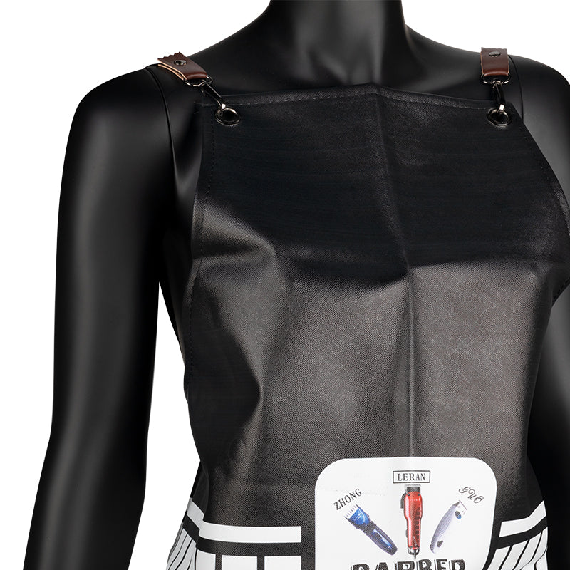 The faux leather barber apron not only looks great, but is also of high quality. It has a universal size. Unique design with adjustable straps that can be removed for easier cleaning.