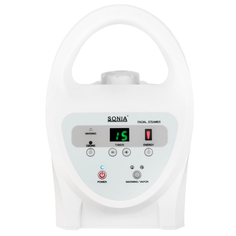 A multifunctional steamer with warm steam, aromatherapy and ozone therapy also has the ability to adjust the steam flow. The nozzle of the device has a handle, thanks to which you can direct the stream of steam towards the customer.