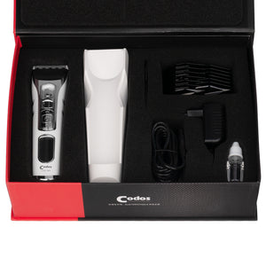 A professional cordless hair clipper/hair trimmer with lithium-ion battery.