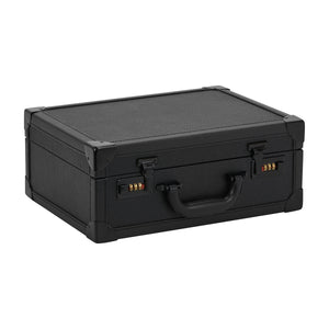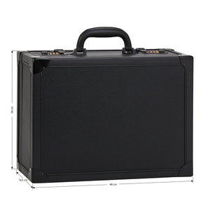 Stylish hairdressing case with double combination lock and comfortable handle.