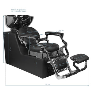 If you offer beard care in your salon, we can suggest the perfect piece of furniture for your barbershop: a Claudius barber washer. The piece of furniture ensures maximum comfort for the barber/hairdresser and the customer. The Claudius car wash is characterized not only by its seating and working comfort, but also by its extremely stylish design. It fits perfectly into interiors decorated in retro style. It was carefully crafted. Even the smallest details are carried out with great precision. Beautiful upholstery with an original texture will delight your customers. A high-quality faux leather that is wear-resistant and easy to care for. The heavy cast iron frame ensures optimal stability even under high loads.