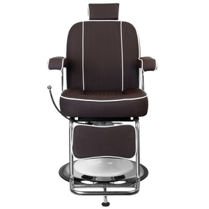 Novelty in our offer - AMADEO barber chair. A modern, perfectly manufactured and ergonomic piece of furniture. It ensures maximum comfort for your customers during treatment. In addition to the height adjustment, the chair has an adjustable backrest. Despite its small space requirement, it is possible to place the client in a comfortable, semi-recumbent position. The comfortable seat is covered with high-quality faux leather. A wide frame ensures the stability of the chair during treatment. Another advantage is the ability to easily adjust the headrest. The product is available in brown.