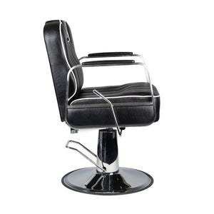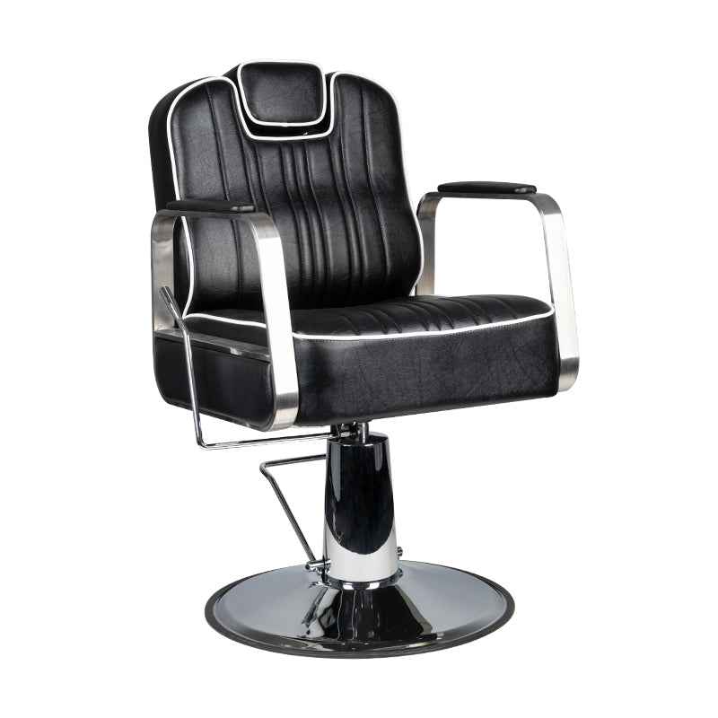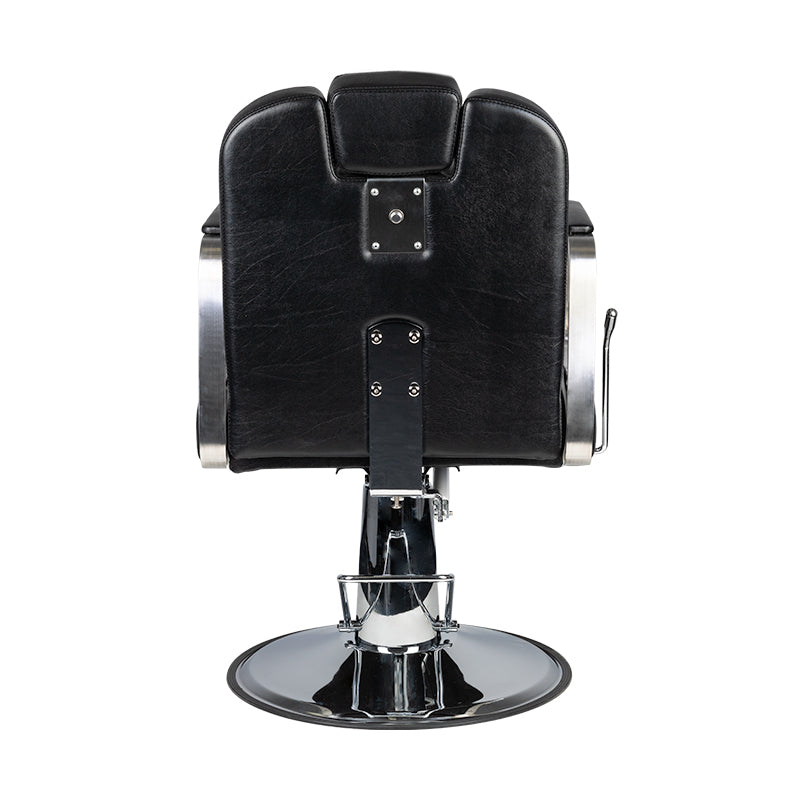 New addition to our offer - MATTEO barber chair. This is a modern, perfectly crafted piece of furniture that ensures maximum comfort for your customers during treatment. In addition to the height adjustment, the chair has an adjustable backrest. Despite its small space requirement, it is possible to place the client in a comfortable, semi-recumbent position. The comfortable seat is covered with high-quality faux leather. A wide, chrome-plated frame ensures the stability of the chair during treatment. Another advantage is the ability to easily adjust the headrest. It is available in black.