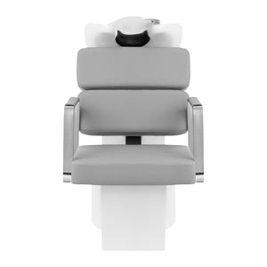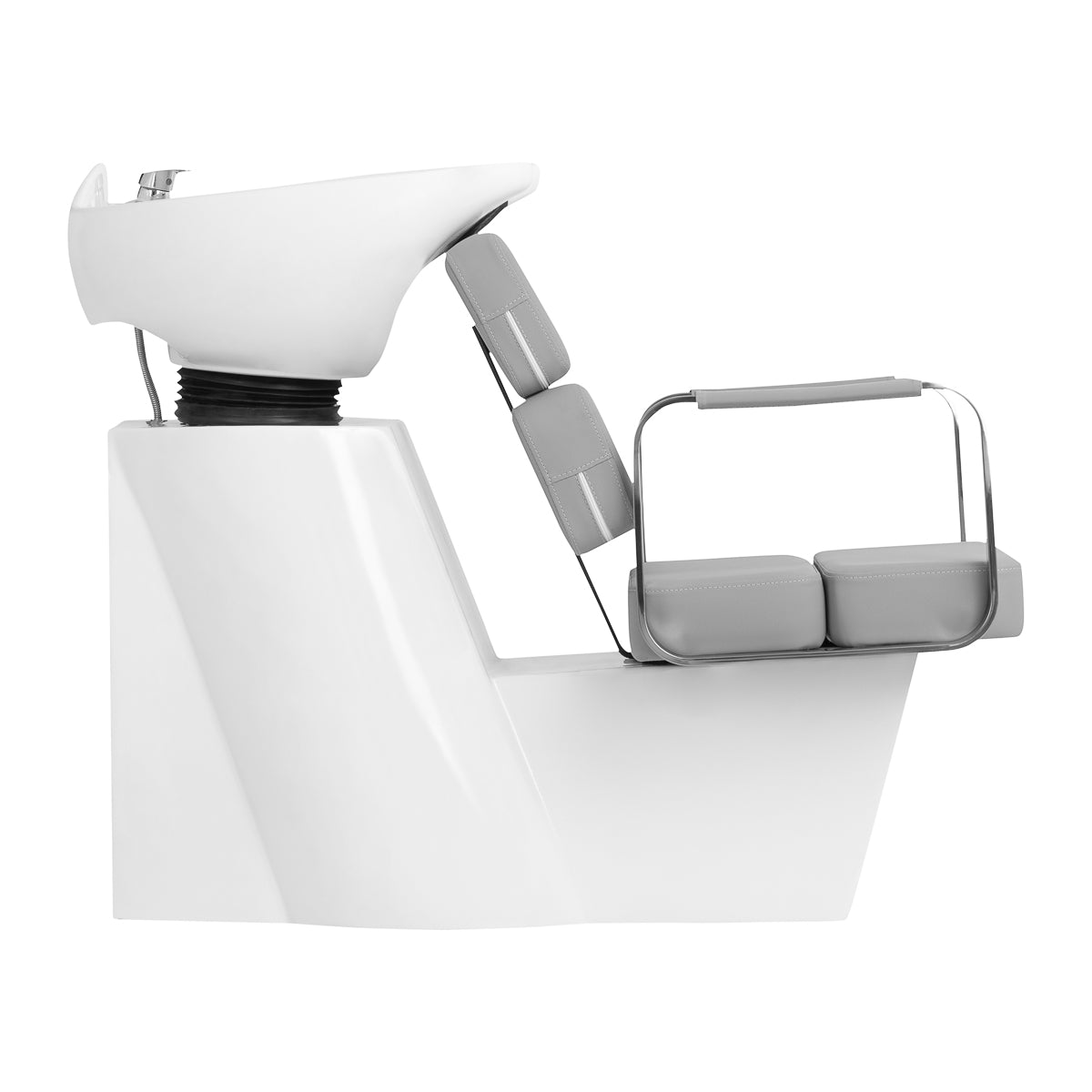 A modern sink from Gabbiano - a combination of Italian elegance and functionality. The car wash is made from the highest quality materials and is perfectly crafted. We know how important the customer's comfort is during treatment, so the special construction ensures solid head support during washing. The soft and extremely comfortable seat is covered with high-quality eco-leather in gray. The sink has a white ceramic bowl and silver armrests. The perfect piece of furniture for modern interiors.