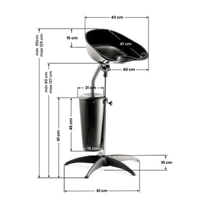 The sink with a flat bowl is made of high-quality plastic, which is easy to clean from hair dye and hair residues. In addition, the sink has a convenient tilt angle adjustment with a screw and a drain hole with a hose for direct removal of water into a container located on an adjustable stand. The capacity of the container is 10 liters.
