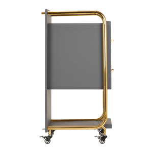 The high-quality Gabbiano Solo hairdressing assistant is an elegant device that significantly improves work in the hairdressing salon. Two spacious drawers and two shelves of different sizes make organizing products and necessary tools much easier. Rubberized wheels with brakes provide sufficient mobility so that you can freely place the furniture anywhere in the living room. Elegant design - polished metal elements in gold tones and a stable structure made of wooden boards in gray tones - perfectly underline the character of the interior .