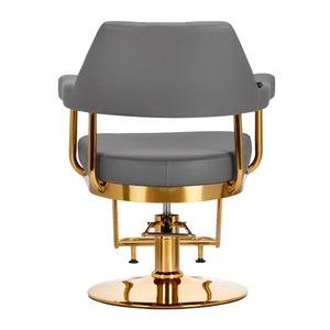 The chair is filled with foam, which is durable and does not deform , ensuring comfortable use for a long time. The upholstery is made of imitation leather that is pleasant to the touch and has a specific structure. Thanks to the use of such material, the device is moisture-resistant, durable and easy to clean . Gray coating and artistic gold elements give it an expression of timeless elegance . It features a tasteful finish that gives it an exclusive character and makes it look good in many professional salons.