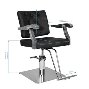 A stylish, perfectly crafted barber chair has been made from high quality materials. This unique piece of furniture satisfies the needs of the most demanding customers. It is ideal for both small salons and spacious, luxurious interiors. The comfortable, soft seat and footrest ensure maximum comfort for the customer, even during treatments lasting several hours.