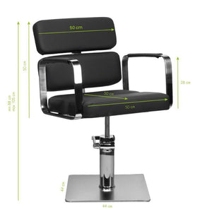 A modern hairdressing chair with a unique design. A very comfortable piece of furniture ideal for modern salons. . It has been specially shaped to ensure a comfortable position for the customer during treatment. It has adjustable height. It is stable and solid. The upholstery is made from high-quality eco-leather. Color: Black.