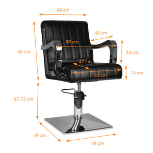 A stylish, perfectly crafted barber chair has been made from high quality materials. This unique piece of furniture satisfies the needs of the most demanding customers. It is ideal for both small salons and spacious, luxurious interiors. The comfortable, soft seat and footrest ensure maximum comfort for the customer, even during treatments lasting several hours.