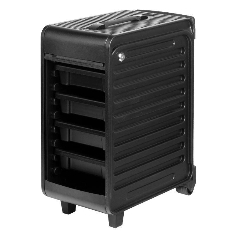 Unique hairdressing trolley for equipment and accessories. Thanks to its functionality, it can be used as a suitcase with wheels. It has 4 drawers.