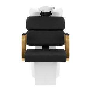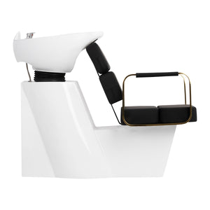 A modern hairdressing wash from Gabbiano is a combination of functionality and Italian elegance. The car wash is made of the highest quality materials and is perfectly processed. We know how important the customer's comfort is during treatments, which is why the special design provides the customer with solid head support during washing. The soft and extremely comfortable seat is covered with high-quality faux leather in gray color. The car wash has a white ceramic bowl and gold armrests. The perfect piece of furniture for modern interiors.