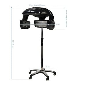 A dryer hood is a device used to speed up chemical and conditioning hair treatments. The infrared hood is a device that shortens the time of perming, lightening and coloring hair or simply applying a mask, thereby the mask is absorbed into the hair faster and better. The device significantly reduces the duration of treatments, saving time for the hairdresser and the customer. The electronic parameter setting makes work easier for the hairdresser.
