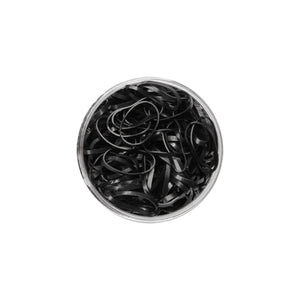 Silicone, odorless hair elastics - braids, packaged in a plastic jar. The rubber bands are black. The package contains approximately 300 pieces. Rubber bands are very durable and stretch very well.