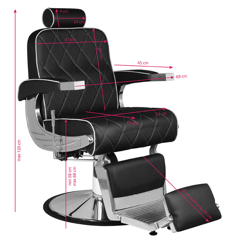 Following this trend, we have added a new product to our offer - the barber chair. This is a modern, perfectly crafted piece of furniture. It ensures maximum comfort for your customers during treatment. In addition to the height adjustment, the chair has an adjustable backrest and an adjustable footrest. Despite its small space requirement, it is possible to place the client in a comfortable, semi-recumbent position. The comfortable seat is covered with high-quality faux leather. A wide, chrome-plated frame ensures the stability of the chair during treatment. Another advantage is the ability to easily adjust the headrest.