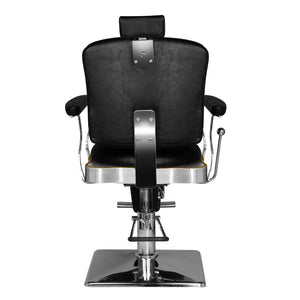 A classic hairdressing chair / barber chair from HAIR SYSTEM. Elegant and very comfortable. The solid chrome-plated frame ensures the stability of the seat. The upholstery was made from high-quality eco-leather in black. It has a backrest and headrest adjustment as well as an adjustable height (top-bottom).