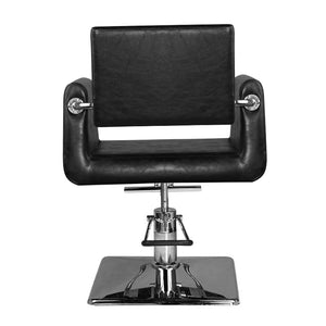 A modern hairdressing chair from HAIR SYSTEM. Elegant and very comfortable. The solid chrome-plated frame ensures the stability of the seat. The upholstery was made from high-quality eco-leather in black. It has adjustable height (top-bottom).