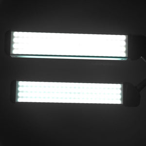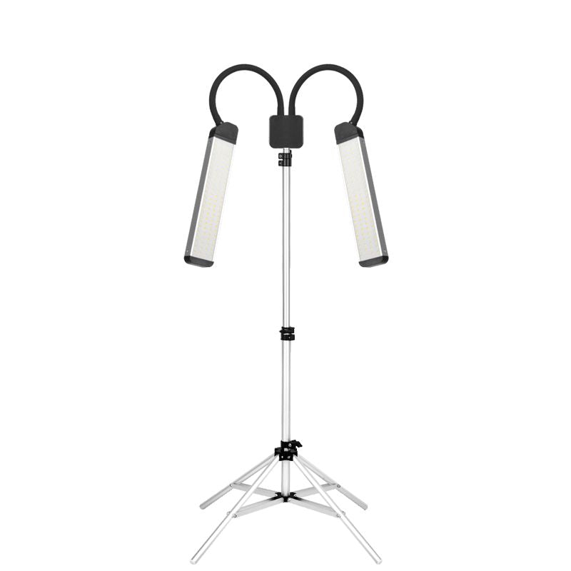 A professional lamp POLLUKS is a product made of very light and durable aluminum. By using 192 LED diodes, we achieve balanced lighting without color discoloration or unwanted heat emissions similar to daylight. The lamp has two heads on elastic arms. This design ensures uniform illumination with cold light and thus prevents shadows from forming.