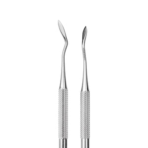 The tips are profiled in a direction that allows you to work with both the right and left hands. This makes it very convenient to perform such procedures as: probing the nails, applying tamponades or cleaning the periungual folds. The flat surfaces of the blades and their pointed end make it easier to remove contamination even in hard-to-reach places. The polished surface gives the tool an elegant look.