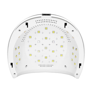 The lamp is equipped with a timer with three programmed operating times : 30 s, 60 s and 120 s (so-called "Low Heat Mode"), which are counted down on a clear digital display. The built-in motion sensor automatically activates the lamp when you insert your fingers or toes underneath, assuming a maximum exposure time of 120s. This feature works when no mode is selected and the display shows the elapsed curing time . This allows you to freely choose the duration of exposure to the stylization currently being performed. In addition, after selecting the already mentioned "Low Heat Mode" system, the lamp heats up more slowly during the curing of the styling and gradually increases its power. This prevents the feeling of burning or heat during radiation. This is an irreplaceable function , especially when curing gels, which often causes discomfort when using other lamps available on the market.