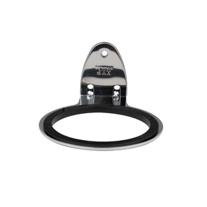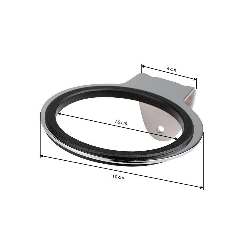 The hair dryer wall mount helps keep the hair dryer at hand in an easily accessible location. It is made of steel and has a rubber ring that protects the hairdryer from scratches.