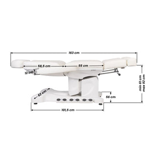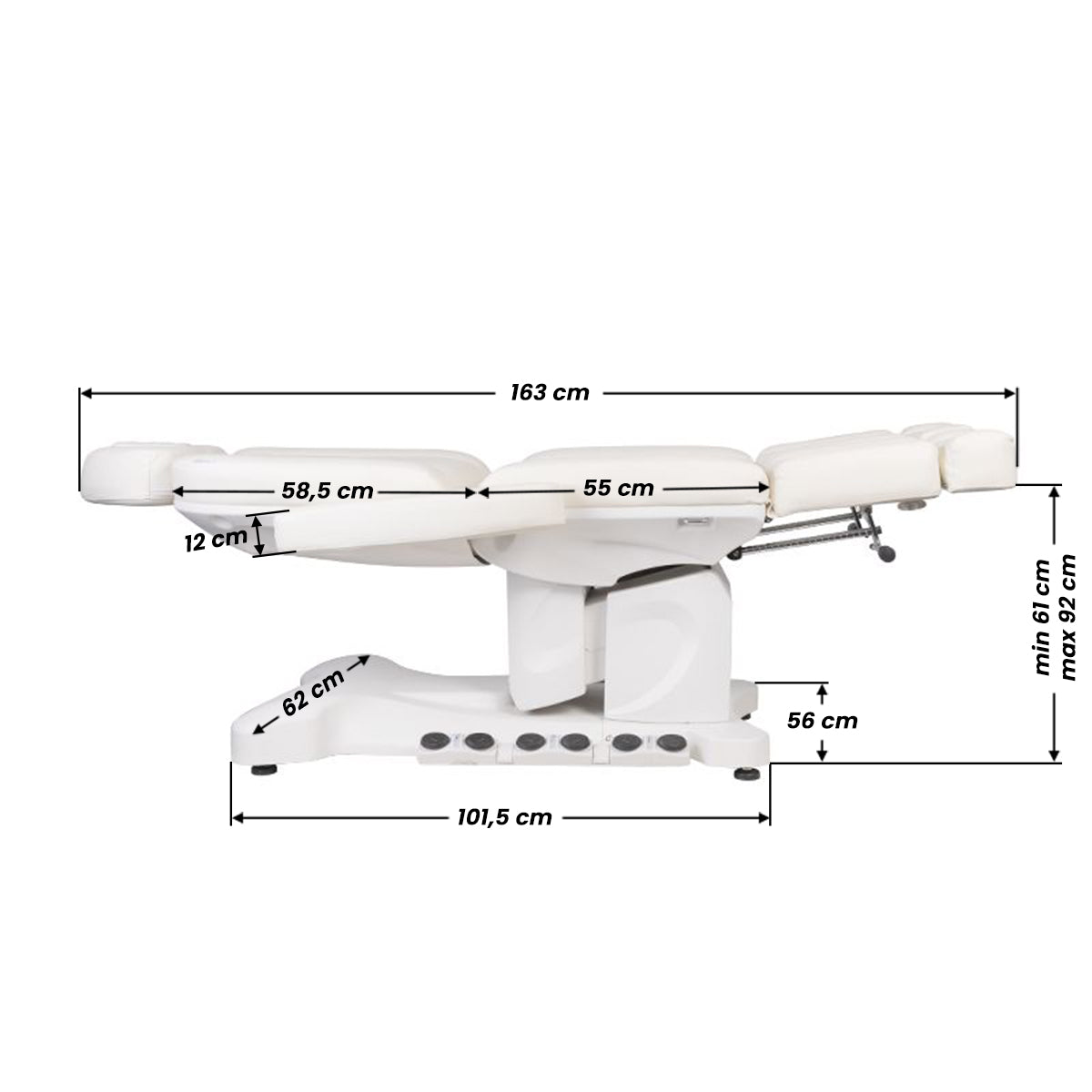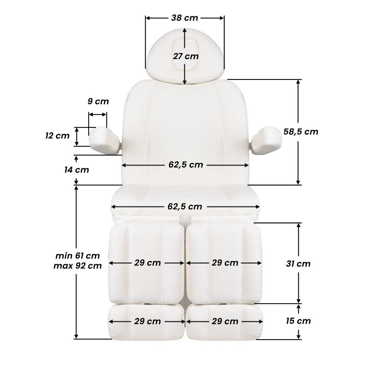 SILLÓN DE BELLEZA ELÉCTRICO AZZURRO 708BS EXCLUSIVO PEDI-PRO El exclusivo sillón de belleza eléctrico es ideal para salones de belleza y salones de SPA. Con sus actuadores independientes, podrás ajustar el asiento en 3 niveles mediante mando a distancia e interruptores de pie para realizar cómodamente tratamientos de pedicura tanto en el rostro como en el cuerpo. Con el mando a distancia podemos utilizar los ajustes programados y activar la función HOT (calefacción). El asiento presenta un acolchado perforado que no se ve en otros asientos y retroiluminación LED de color en la base. ¡¡¡GRAN CALIDAD!!! ¡¡¡2 AÑOS DE GARANTÍA!!!
