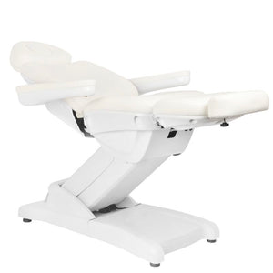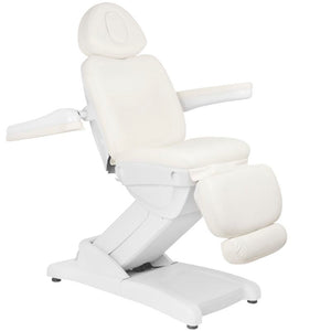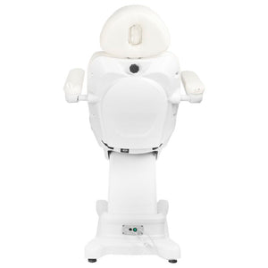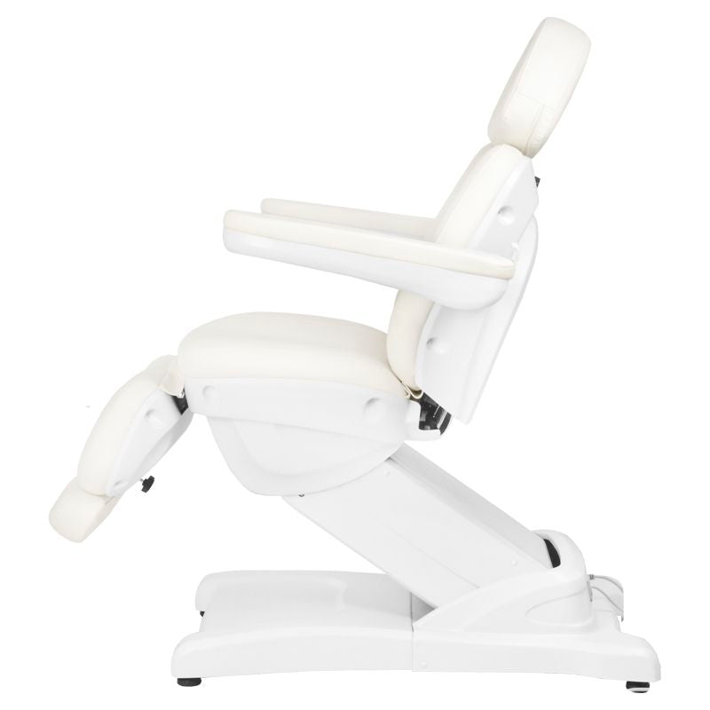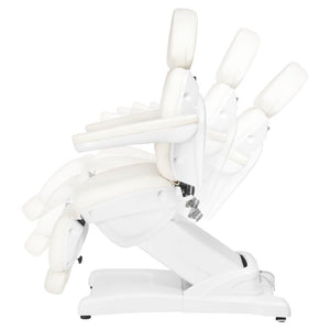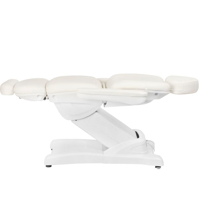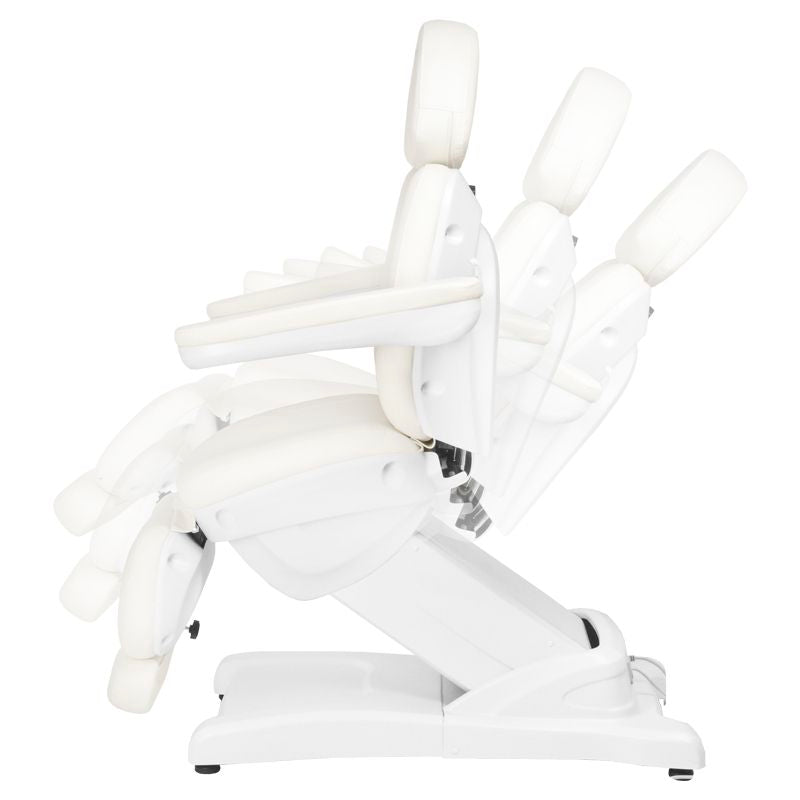 Una mesa de cosmética eléctrica es ideal para salones de belleza y salones de SPA. Gracias a los motores independientes, es posible regular la camilla en cuatro niveles con mando a distancia, lo que permite realizar tratamientos faciales y corporales. Con el mando a distancia se puede regular la altura de la mesa de cosmética, la inclinación del respaldo y los reposapiés, así como ajustar un asiento en posición cuna. Gracias al reducido espacio que ocupa, la mesa de cosmética es ideal para un pequeño salón de belleza.