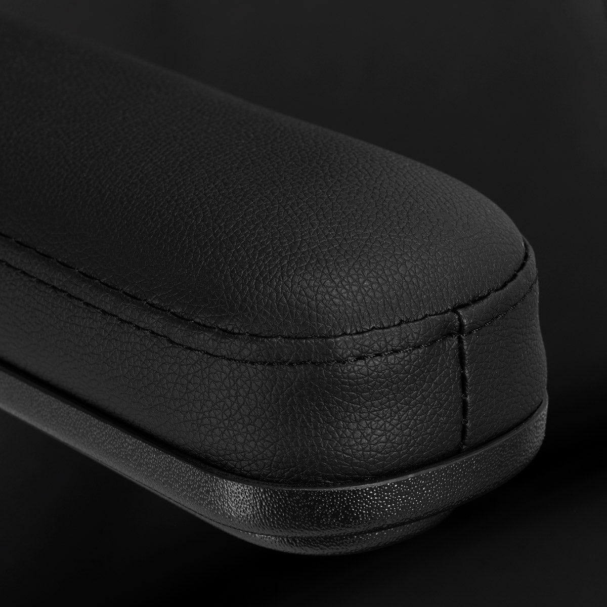 El sillón está relleno de espuma y tapizado con un agradable tacto de piel sintética mate en tonos negros. Gracias al uso de dicho material, el dispositivo es resistente a la humedad y fácil de limpiar. Los dobladillos bien confeccionados le dan un aspecto elegante. El diseño minimalista y sencillo y los colores clásicos lo hacen encajar en cualquier interior.