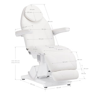 El sillón de belleza eléctrico Sillon Basic presenta una apariencia práctica, fácil operación y versatilidad. Está equipado con 3 actuadores controlados mediante un mando a distancia con cable . Cuenta con un asiento de perfil ergonómico y la capacidad de adaptarse a las necesidades individuales, lo que lo hace perfecto para muchos salones especializados.