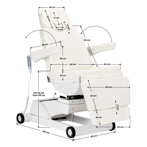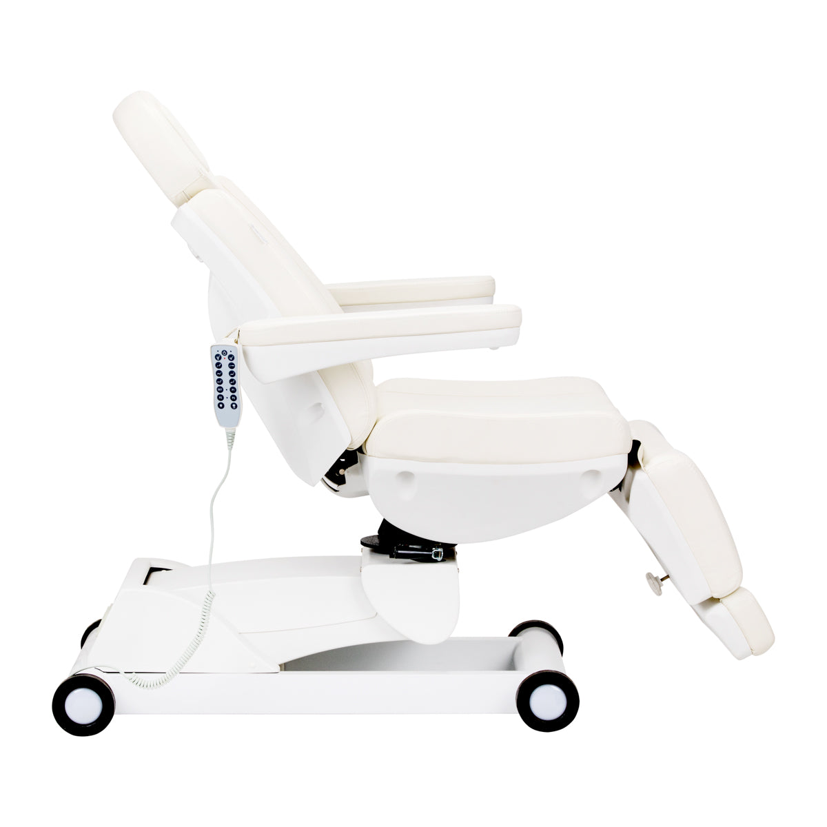 La silla eléctrica Azzurro está equipada con 4 actuadores controlados por un mando a distancia con cable. Destaca por su capacidad para guardar fácilmente configuraciones de posición personalizadas para que puedas volver a ellas rápidamente con un solo botón. Se caracteriza por su estabilidad, gran personalización y universalidad y, por lo tanto, funcionará en muchas consultas especializadas.