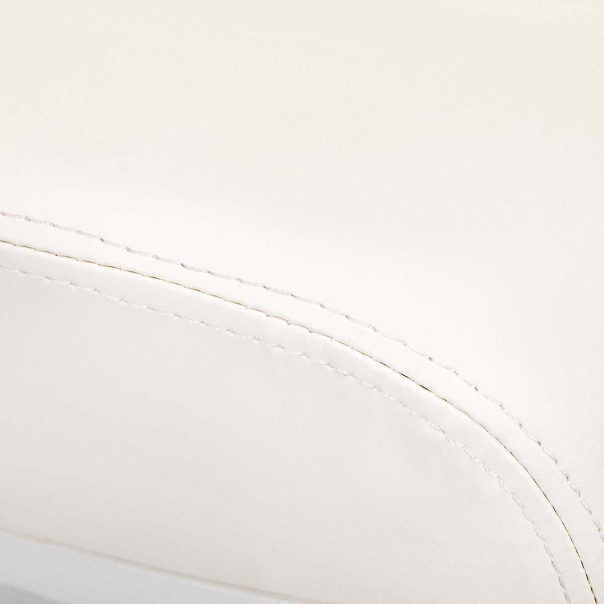La sólida construcción garantiza la estabilidad y longevidad de los muebles. El sillón está relleno de espuma y tapizado con piel sintética agradable al tacto en tonos blancos. Gracias al uso de este material, el dispositivo es resistente a la humedad y fácil de limpiar .
