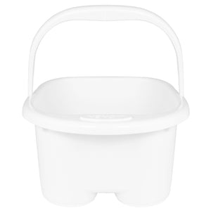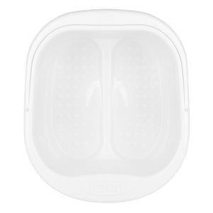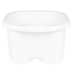 Un recipiente es adecuado para remojar los pies antes de la pedicura. Está fabricado en plástico y tiene una base perfilada.