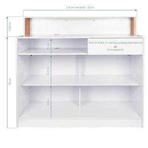 Una recepción de peluquería con estilo. Excelentemente hecho, material de alta calidad. El mueble está bellamente decorado en el frente con tapizado acolchado. Sin duda aumenta el prestigio de tu salón.