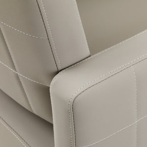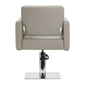 La cómoda silla está rellena de espuma duradera y resistente a la deformación , lo que garantiza un uso prolongado, un alto confort y conveniencia incluso durante muchas horas de tratamiento. El acolchado está hecho de cuero sintético, que es agradable al tacto , y el uso de este material hace que el dispositivo sea resistente a la humedad, duradero y muy fácil de limpiar . El revestimiento gris y los elementos visualmente interesantes le dan un carácter único . Las características presentan un diseño elegante que hace que la silla luzca genial en muchas peluquerías.