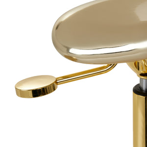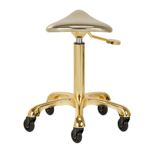 El aspecto distintivo del taburete es memorable y tiene un aspecto extremadamente elegante. Es adecuado tanto para peluquerías como para salones de belleza. El marco cromado y la base estable de cinco brazos con neumáticos de goma garantizan un uso seguro, una gran movilidad y adaptabilidad a sus propias necesidades. El cómodo y bien proporcionado asiento relleno de espuma duradera brinda comodidad a los usuarios. La funda de piel sintética brillante en tonos dorados es fácil de limpiar, duradera y resistente a la humedad.