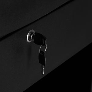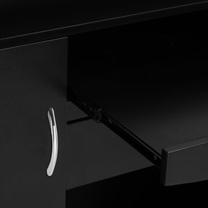 Este mueble está hecho de tablero laminado duradero y de alta calidad en tonos negros, y las superficies lisas no causarán problemas para mantener la limpieza ; si está sucia, simplemente límpiela con un paño húmedo. La parte frontal decorativa está revestida de polipiel en tonos dorados, lo que le aporta un estilo elegante , asegura la durabilidad del mueble y su fácil limpieza. Los botones decorativos añaden elegancia y singularidad adicionales y subrayan el carácter del interior. La recepción ha sido cuidadosamente fabricada, es estable y los materiales utilizados permiten un uso eficaz durante muchos años .