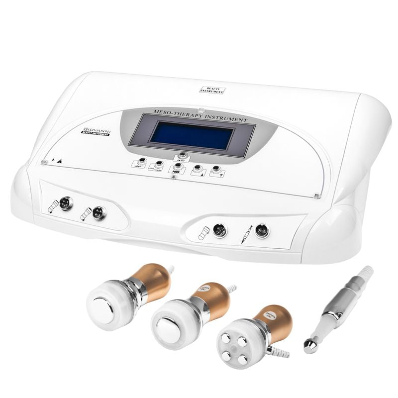 El dispositivo cosmético GIOVANNI CLASSICMESOTHERAPIA se caracteriza por un diseño estilizado y vanguardista y es un adorno para cualquier salón de belleza. Un control intuitivo del sistema con pantalla de cristal líquido permite un funcionamiento rápido y sencillo, lo que garantiza un aumento de la calidad de los servicios prestados. La mesoterapia sin agujas es un tratamiento muy eficaz y seguro que no deja heridas en la piel. Los tratamientos de mesoterapia se basan en el uso de electroporación y electroósmosis para nutrir las células profundas, así como el drenaje linfático para acelerar el metabolismo, mejorar el flujo de la linfa y la circulación sanguínea, reducir las arrugas, tensar la piel. Iluminar, mantener el nivel correcto de humedad de la piel. piel, reducir la celulitis, acelerar la quema de grasas y adelgazar la figura, han sustituido por completo a los tratamientos tradicionales con microagujas. En comparación con el uso de productos individuales para el cuidado de la piel, la mesoterapia permite lograr una mayor eficiencia en la absorción de los productos para el cuidado de la piel. La mesoterapia elimina los problemas cutáneos asociados a la falta de penetración (más profunda que la capa de la epidermis) de estos productos. La mesoterapia también acorta el tiempo de tratamiento. El dispositivo está disponible en blanco. El dispositivo no dispone de electrodo pasivo para el cliente. El circuito cerrado es una persona que realiza el tratamiento.