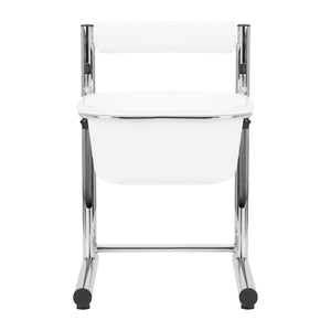 El pediluvio es adecuado para remojar los pies antes de una pedicura. El pediluvio es muy cómodo tanto para el cliente como para el podólogo y la altura del recipiente se puede ajustar suavemente. Esto significa que se puede ajustar a cualquier altura de mesa de cosmética. Se colocó un acolchado suave en el respaldo del pediluvio. Allí el cliente puede descansar la pierna.