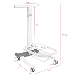 Lavapiés COMFORT regulable en altura con carro con cerradura. La función LIFT permite un ajuste continuo de la altura en el rango de 24-47 cm mediante un accionamiento especial que se puede bloquear sin esfuerzo con el pie. Trabajar con este carro será un verdadero placer. ¡Todo lo que tiene que hacer es llenar el pediluvio con agua, transportarlo a su lugar de trabajo y ajustar la altura! El carro ha sido desarrollado y fabricado con el mayor cuidado para la empresa Activ, que es el único distribuidor del pediluvio COMFORT.