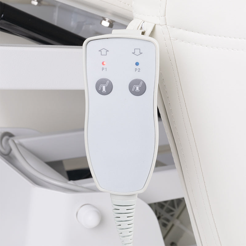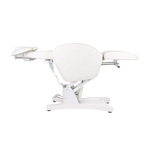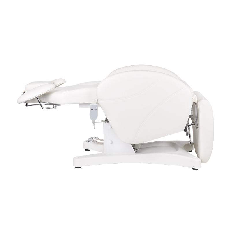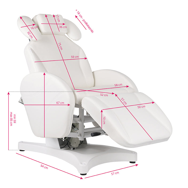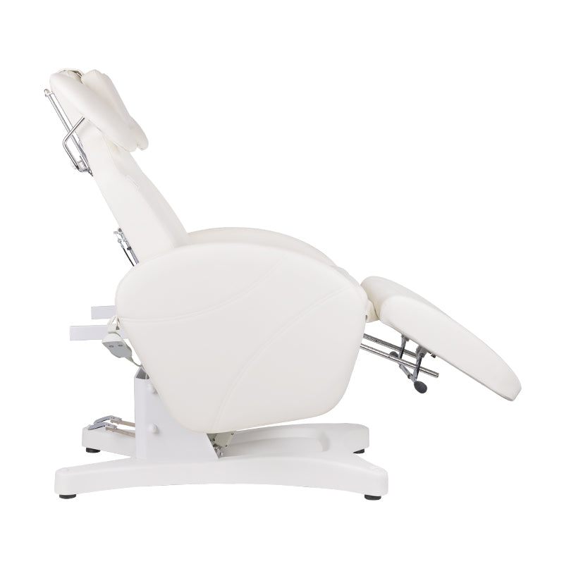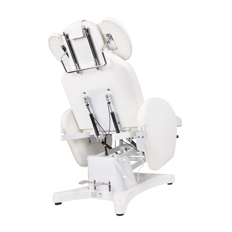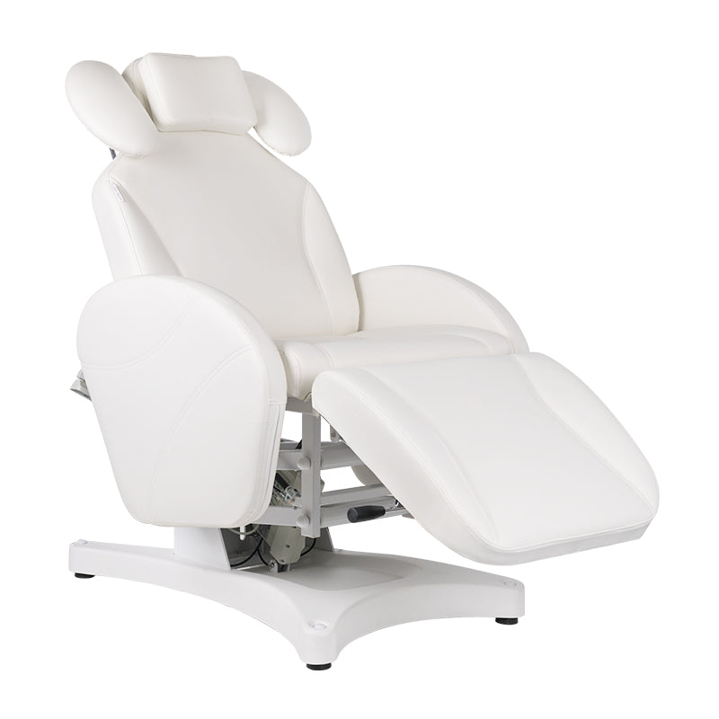 El sillón Ivette no es más que comodidad y conveniencia durante los procedimientos cosméticos. Estas son las características más importantes que brindan satisfacción desde la perspectiva de los estilistas, pero también las condiciones que moldean a los clientes. Tener una silla de extensión de pestañas perfectamente coordinada y cumplir con todas las expectativas es absolutamente imprescindible. El asiento dispone de ajuste eléctrico de altura, ajuste manual de reposapiés y reposabrazos, así como dos interruptores de pie para ajustar el respaldo y la cuna. Las soluciones utilizadas hacen que la silla sea especialmente práctica y el reposamanos es una solución muy útil que no encuentro en otros asientos. Adicionalmente con una cómoda almohada para el cliente.