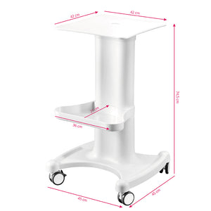 Un carrito cosmético de plástico funcional con ruedas de goma y función de bloqueo. Es ideal como mesa para equipamiento cosmético. Tiene dos compartimentos: para el dispositivo y los accesorios. El mueble garantiza el confort de trabajo.