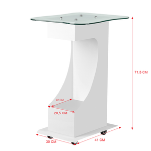 Un carrito cosmético funcional de metal y vidrio con ruedas de goma y función de bloqueo. Es ideal como mesa para equipamiento cosmético. Tiene un estante resistente para dispositivos cosméticos y ruedas para un movimiento suave. El mueble garantiza el confort de trabajo.