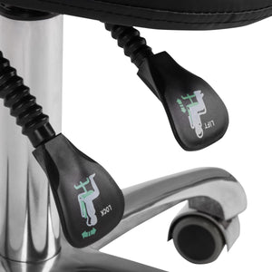 Cómodo, exclusivo y estable taburete de cosmética con respaldo y asiento perfilado, sobre una base de cinco radios muy estable. Ajustable en tres niveles: