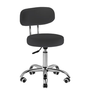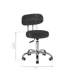 El taburete cosmético tiene una estructura estable de 5 brazos con ruedas de goma. Está disponible en negro.