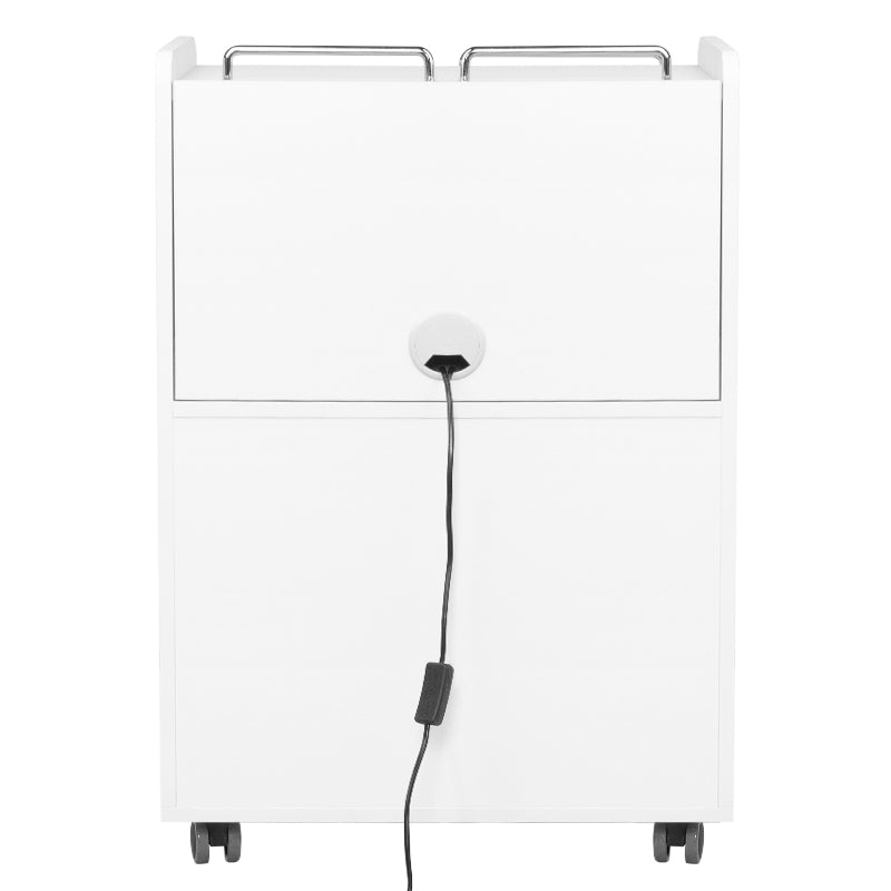 Un carro cosmético de podología de alta calidad es un mueble cosmético funcional con ruedas. Gracias a las ruedas podrás transportarlo a otras salas de tratamiento. El carrito para cosméticos tiene cajones para herramientas, accesorios y un estante extraíble para fresadoras de podología u otros equipos. Un cajón tiene una lámpara UV-C incorporada para una mejor esterilidad de herramientas y accesorios.