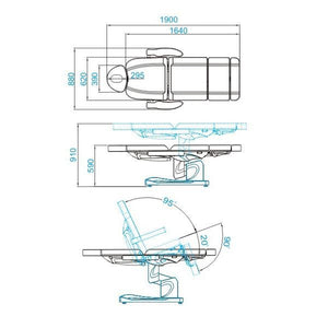 LINGER COSMÉTICO ELÉCTRICO AZZURRO III PEDI Una tumbona cosmética eléctrica es ideal para salones de belleza y salones SPA. Gracias a los motores independientes, es posible regular la camilla en cuatro niveles con mando a distancia, lo que permite realizar tratamientos faciales y corporales. Con el mando a distancia se puede regular la altura de la mesa de cosmética, la inclinación del respaldo y los reposapiés, así como ajustar un asiento en posición cuna.