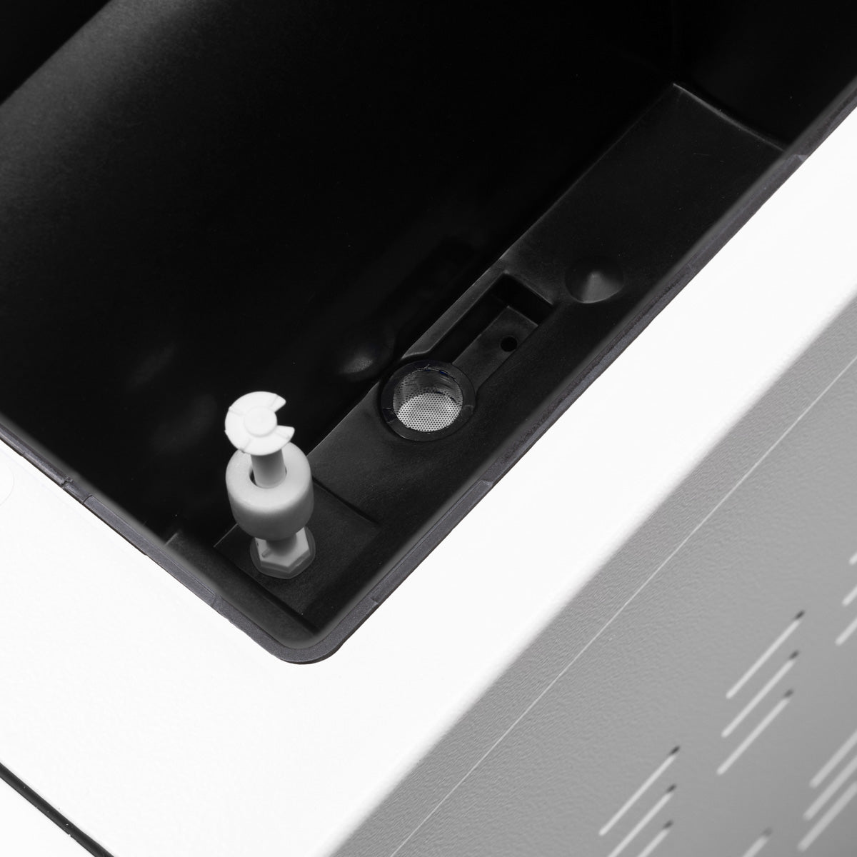 Depósitos incorporados para agua limpia y usada. | El tanque de agua pura está diseñado para agua destilada o desionizada utilizada para la esterilización. La presencia de un depósito para el agua usada hace que no tengamos que depender del contenedor externo |