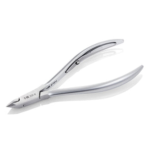 Pinza para cutículas profesional de un solo resorte fabricada en acero inoxidable para una eliminación precisa de las cutículas. Disponible en tamaños: 12 (4 mm), 14 (5 mm) y 16 (6 mm). Gracias al método de unión de mandíbulas Lap Joint (que minimiza el desgaste del material y la posibilidad de juego en comparación con otros métodos de unión), los alicates garantizan un uso cómodo durante un largo período de tiempo. Los alicates tienen un mango de perfil especial (versión extendida), que garantiza una alta precisión, comodidad y comodidad de trabajo.