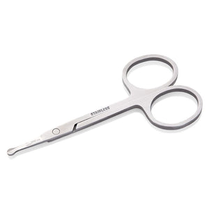 - de acero inoxidable INOX cepillado - tipo de hoja: estrecha, recta, suavemente rematada con una bola (la llamada hoja de seguridad) - tipo de conexión: remachada - longitud de la hoja: 19 mm - longitud total de las tijeras: 9 cm - se puede desinfectar y esterilizar por cualquier medio (químico, térmico, químico y térmico)